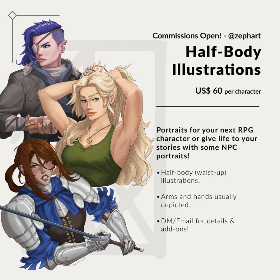 Reach out! I'll be happy to work with you to realise your next character! Feel free to DM on any of my socials or send an email to [email protected]